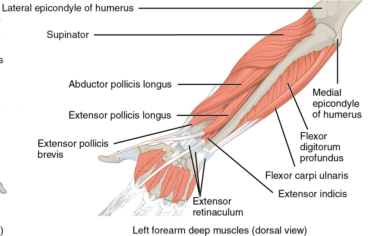 - Supinator: Originating from the lateral epicondyle and ulna, it supinates the forearm by rotating the radius.