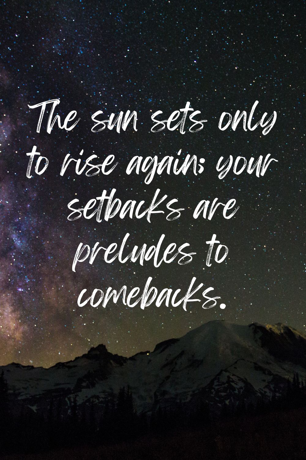 “The sun sets only to rise again; your setbacks are preludes to comebacks.”